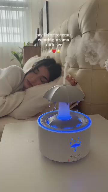 Rotierender Regenschirm-Wassertropfen-Luftbefeuchter für den Haushalt, schwerer Nebel, Desktop-Regenbogenlichter, Fernbedienung, Aromatherapie-Maschine